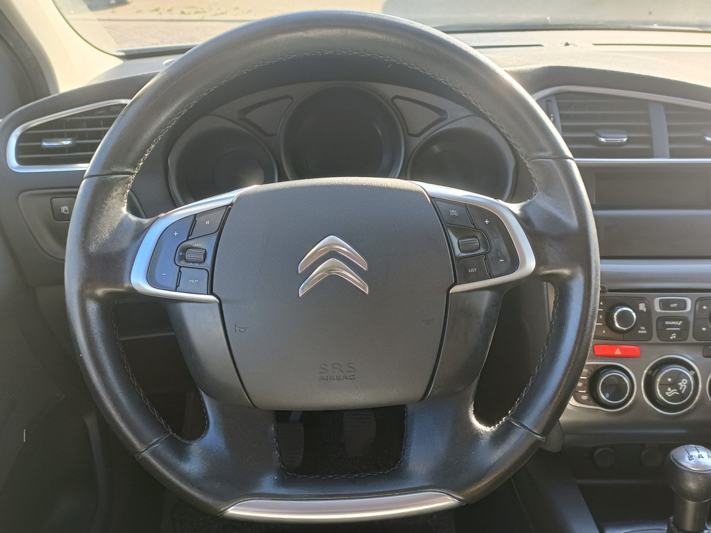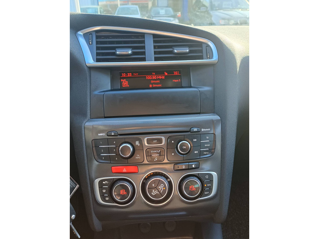 Deze Citroën is voorzien van knoppen op het stuur om het audiosysteem te bedienen. De automatische airconditioning zorgt onder alle omstandigheden voor een prettige temperatuur. U kunt bij het inparkeren natuurlijk niet aan alle kanten ogen hebben. Daarom is deze Citroën C4 voorzien van parkeersensoren! Het drukke verkeer eist onderweg al uw aandacht op. Daarom is het goed dat deze Citroën is voorzien van diverse systemen die u assisteren tijdens de rit. Een automatisch inschakelbare verlichting neemt het waar als het donker wordt of gaat schemeren, en schakelt dan automatisch de verlichting in. Op dezelfde manier "ziet" de regensensor de eerste spatjes regen en schakelt dan de ruitenwissers in, en als het harder gaat regenen zet hij de ruitenwissers ook in een snellere stand. Een stabiele en comfortabele snelheid houdt u feilloos aan met de cruise control. En deze auto heeft ook automatisch dimmende binnenspiegel, isofix-aansluiting, centrale deurvergrendeling met afstandsbediening en bekerhouder als standaard uitrusting.